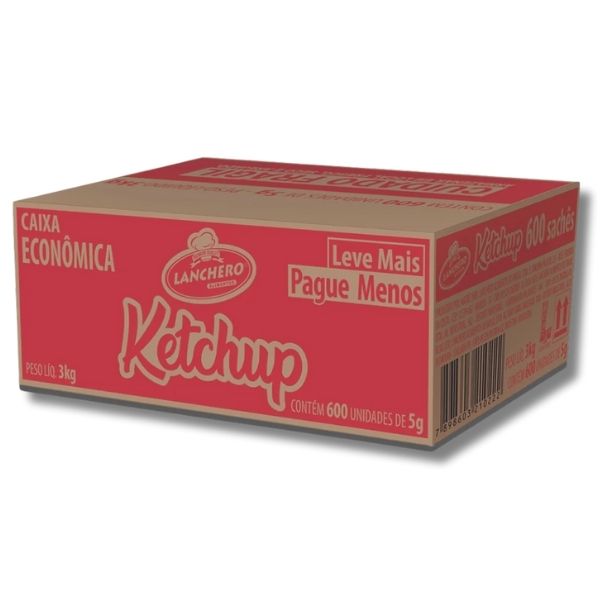 Ketchup Lanchero 600x5g em saches de 5g e ideal para estabelecimentos que buscam praticidade, higiene e controle de porcoes. Com sabor equilibrado e textura cremosa, e perfeito para acompanhar lanches, porcoes, refeicoes rapidas e entregas em delivery.